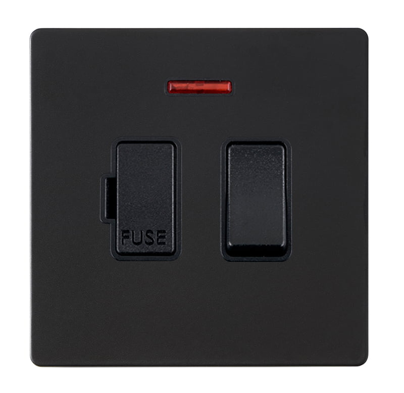 Hartland G2 Matt Black 1 gang 13A Double Pole Fused Spur and Neon Black/Black